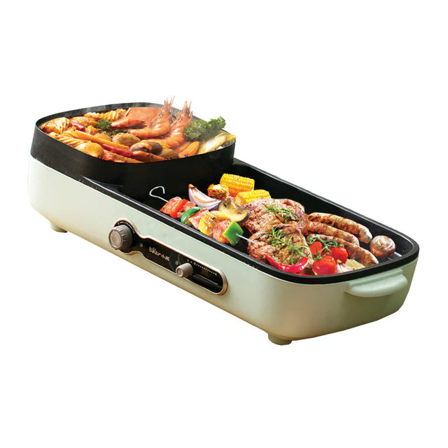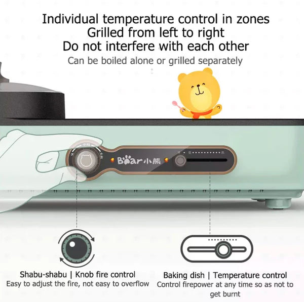 Bear Steamboat With Bbq Grill, 2 In 1 Multi Cooker With Non-Stick Inner Pot