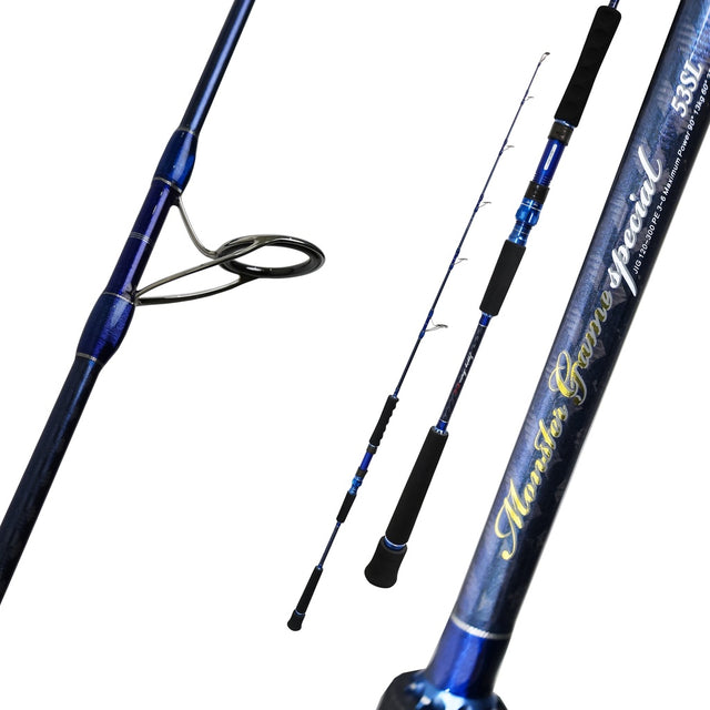 The JM MONSTER GAME SPECIAL 53SL is a precision-engineered rod designed for heavy lures weighing between 100 and 250 grams. At 5'8'' in length, it offers enhanced control and power, ideal for targeting large, aggressive fish. Built to withstand intense battles, this model combines durability with expert-level performance, making it a preferred choice for serious anglers seeking reliability and strength in challenging fishing conditions.