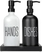 This Black and White Matte 500ml Hand Soap Bottle features a sleek design with a stainless steel pump, ideal for dispensing hand or dish soap in both kitchen and bathroom settings. Its durable construction ensures long-lasting use, while the included tray keeps your countertop clean and organized. With a generous 500ml capacity, it reduces frequent refills, combining functionality and style for an efficient cleaning routine.