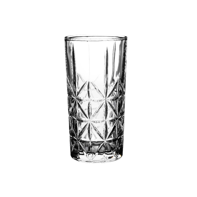 This 350ml highball glass features a distinctive crushed pattern that enhances grip and visual appeal. Ideal for serving juices and other beverages, its sturdy design ensures durability while maintaining an elegant look. Perfect for both everyday use and special occasions, this glass combines functionality with style for a refined drinking experience.