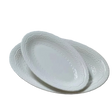 This embossed white charger plate features an elliptical design measuring 25.5 by 16 by 3 cm, combining elegant texture with a refined shape. Ideal for weddings and formal dinners, it provides a sophisticated foundation for your dinnerware, enhancing table presentation while maintaining durability and style. Its compact size and detailed embossing make it a versatile choice for upscale dining settings.