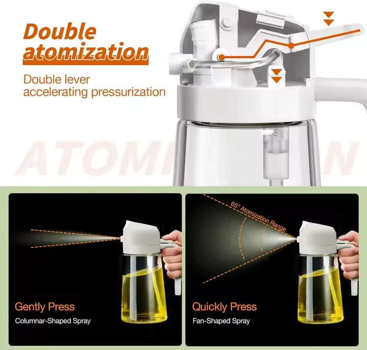 This 450ml glass oil bottle combines a sprayer and dispenser in one, designed for precise and controlled application of olive oil and other cooking oils. Crafted from food-grade materials, it ensures safety and durability for everyday kitchen use. Ideal for air frying, salads, frying, and BBQ, it helps you evenly coat your dishes while reducing excess oil, promoting healthier cooking. Its premium design offers both functionality and style, making it an essential tool for culinary enthusiasts seeking expert-level control over oil usage.