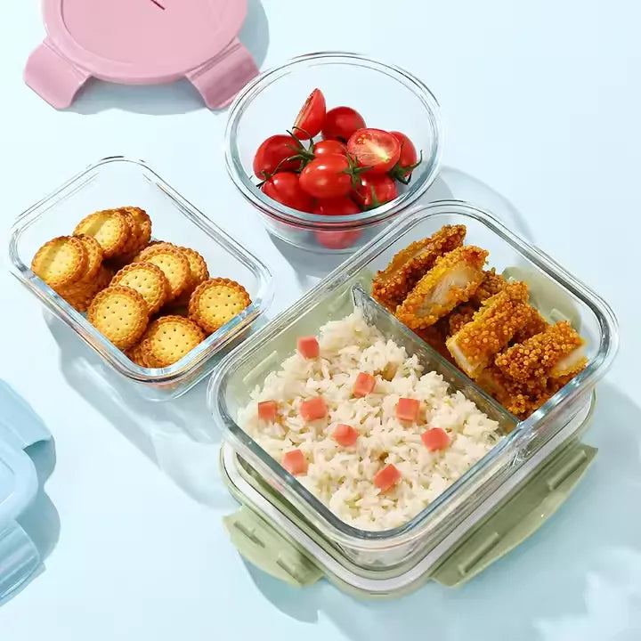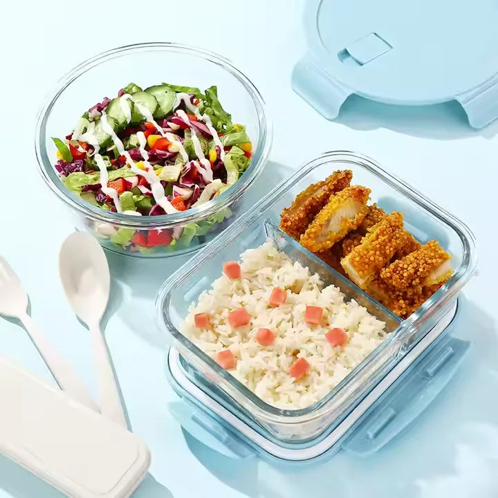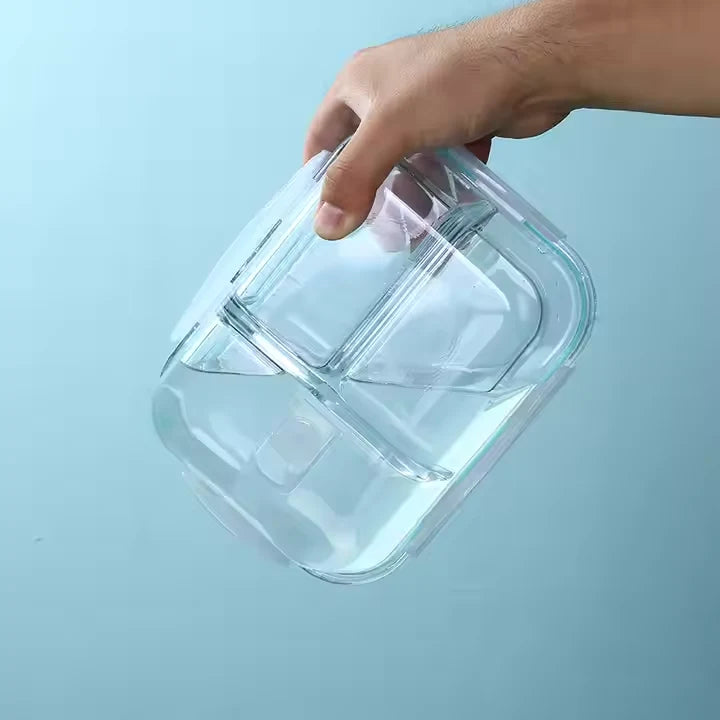 This heating partition type fresh-keeping box features two airtight glass compartments with safety lock lids, ensuring secure and spill-free storage. Designed for home, office, or microwave use, it maintains food freshness while allowing convenient reheating. Its transparent design lets you easily identify contents, making it an ideal solution for organized, healthy meals on the go.