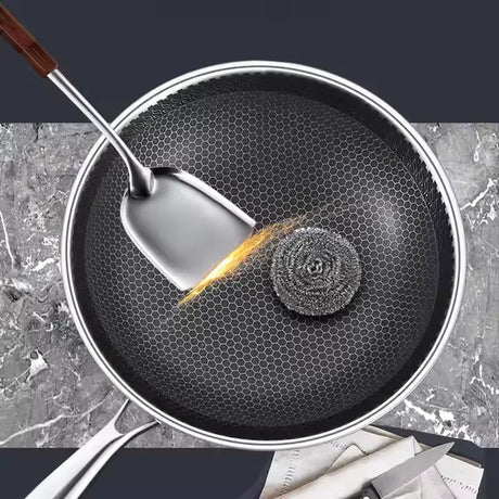 316 Stainless Steel Frying Pan Double Sided 34Cm Single Pot With Ears and Lid