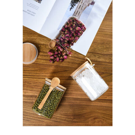 MVR 100.00Unit price /UnavailableGlass Sealed Jars With Bamboo Lids and Spoon Airtight - 600ML