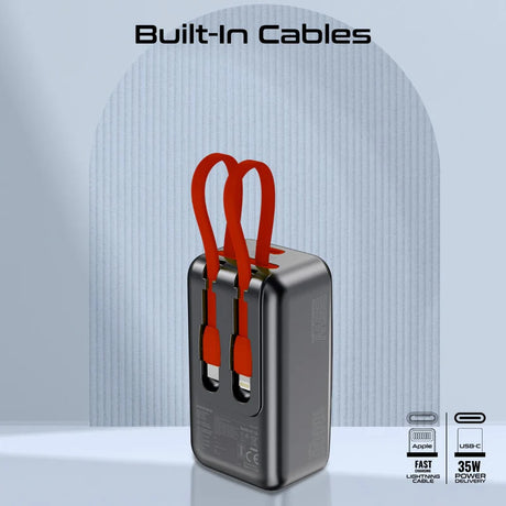 Promate 10000Mah Ultra Compact Superspeed Power Bank (35W, Built-In Usb-C Cable), Black