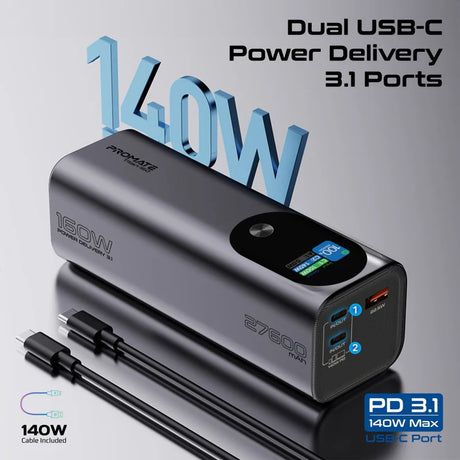MVR 1,300.00Unit price /UnavailablePromate 27600Mah Ultra-Compact 160W Multi-Port Pd 3.1 Power Bank With Tft Lcd Screen