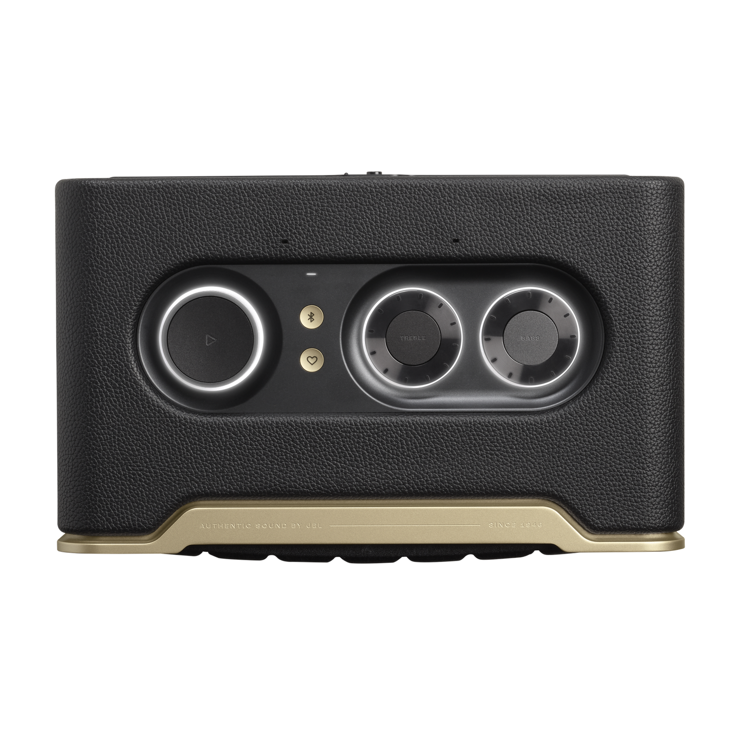 The JBL Authentics 200 speaker delivers stunning retro design and big, bold sound—with Google Assistant and Amazon Alexa both available simultaneously.