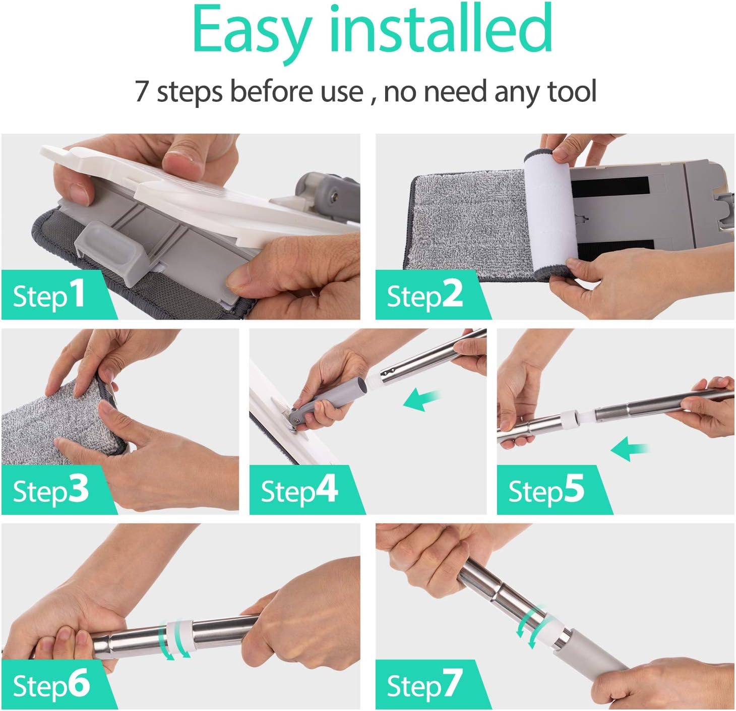Material Plastic Bucket, Stainless Steel Handle, Microfiber Pads