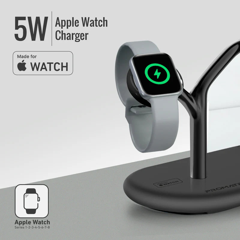 Upgrade your charging game with the Promate 54W High Speed MagSafe Charging Station. This stylish and sleek station can charge up to 4 devices simultaneously, providing you with high-speed charging and a clutter-free desk. Say goodbye to tangled cables and multiple adapters, and embrace the convenience and freedom of wireless charging. Get the ultimate 4-in-1 charging solution with Synergy.